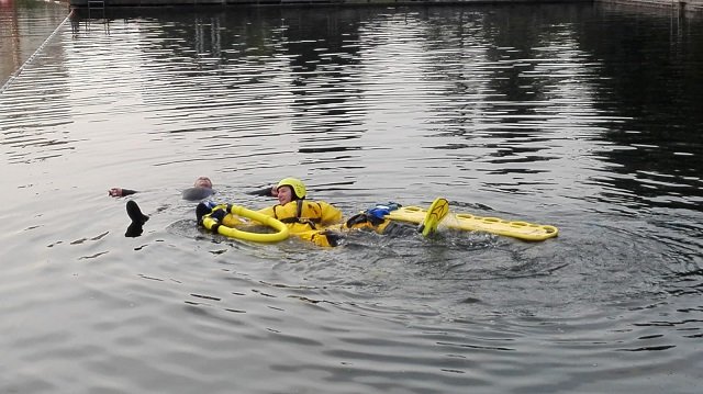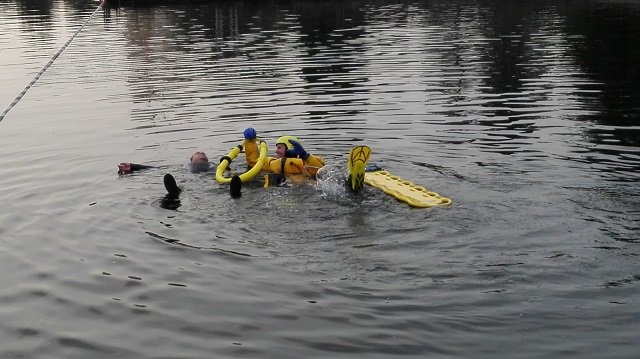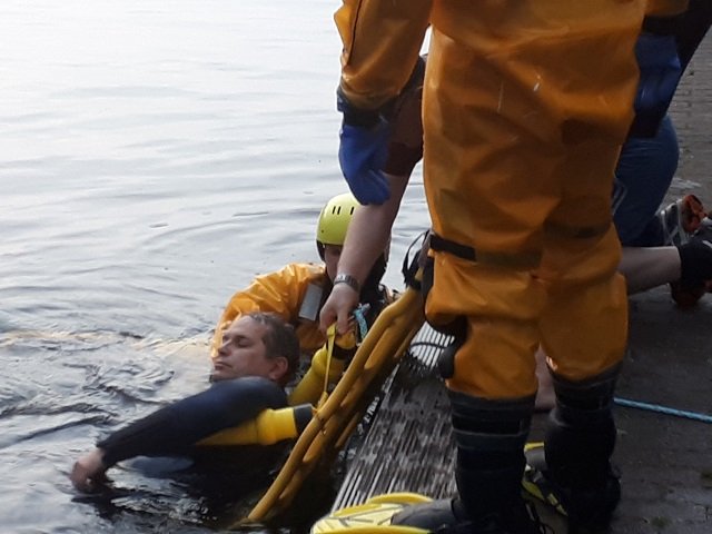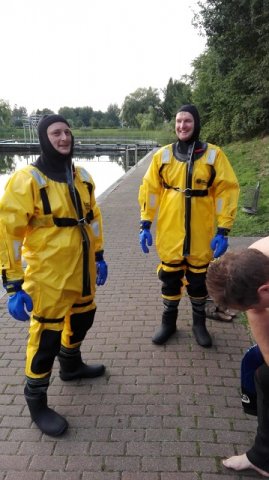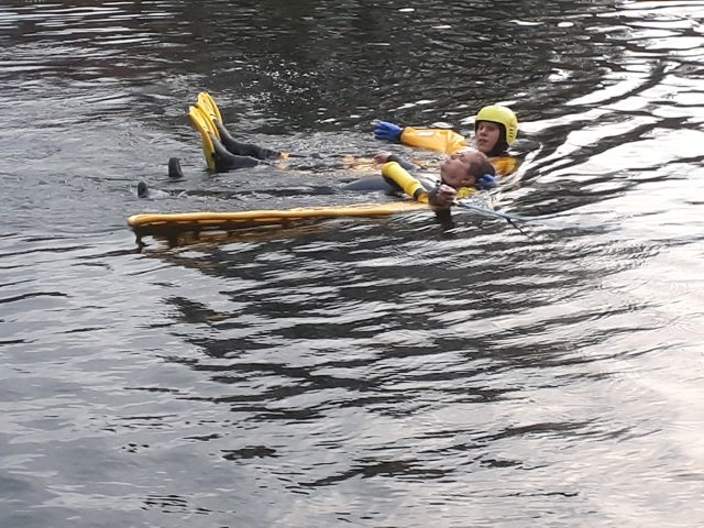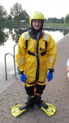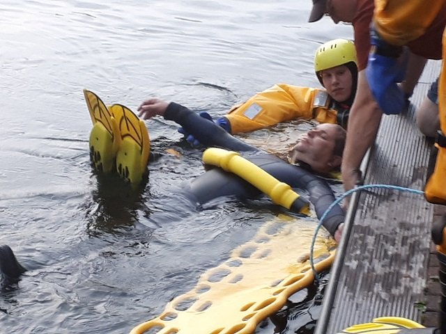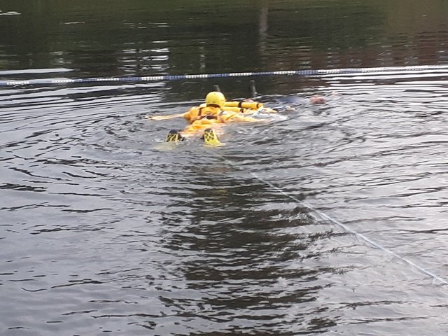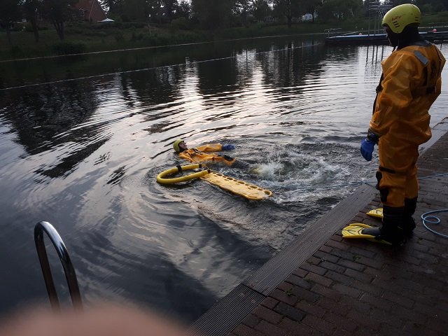 Es wurde der Umgang mit den neuen Wasser- und Eisrettungsanzügen getestet.(15.08.2018)